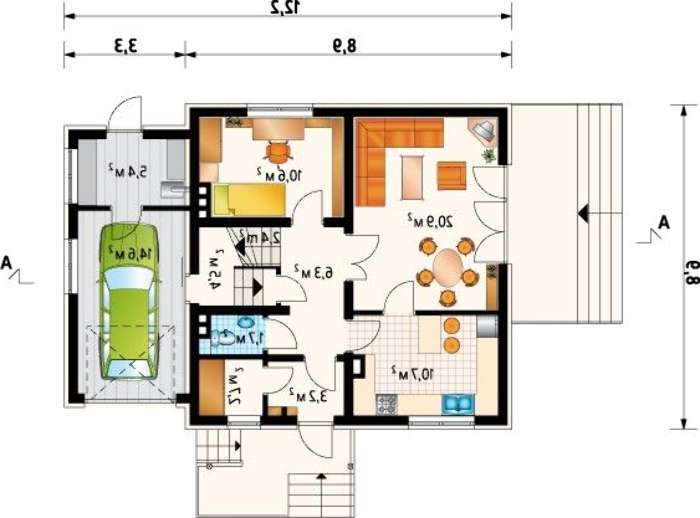 Проект домика с мансардой площадью 140 m² с гаражом 4M3177e