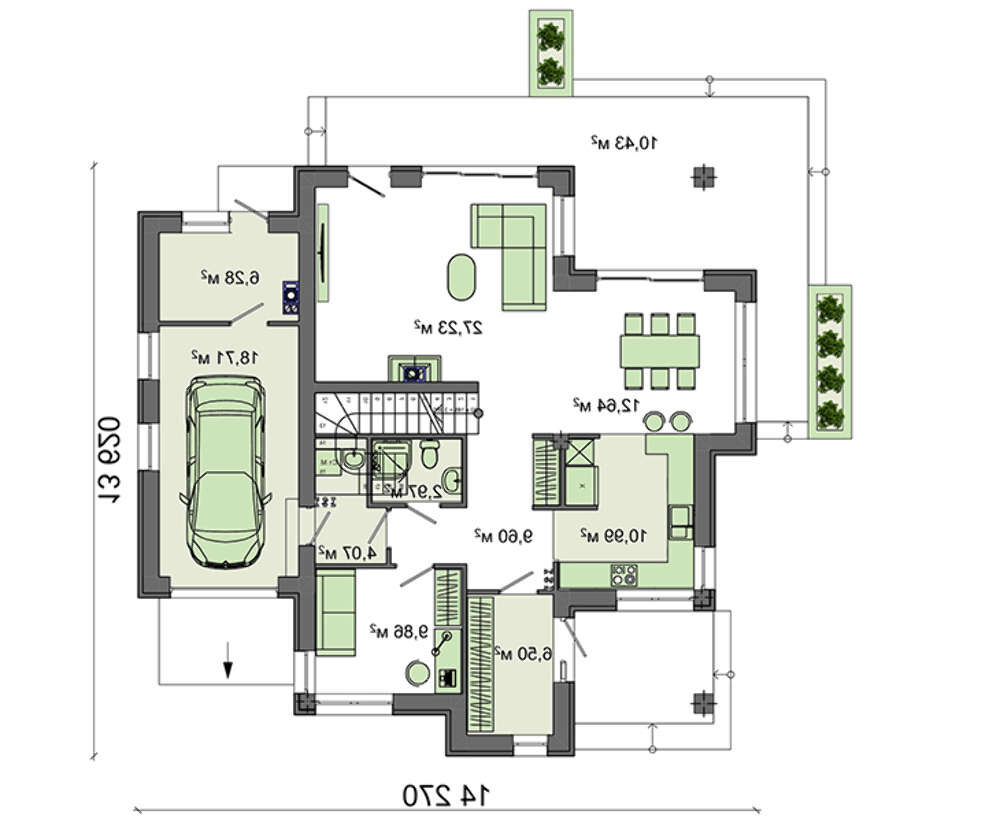 Давно искала такой проект, чтоб въезд в гараж был как бы сбоку парадного входа в дом))А можно посмотреть зеркальное отображение данного дома и уточнить его размеры линейные