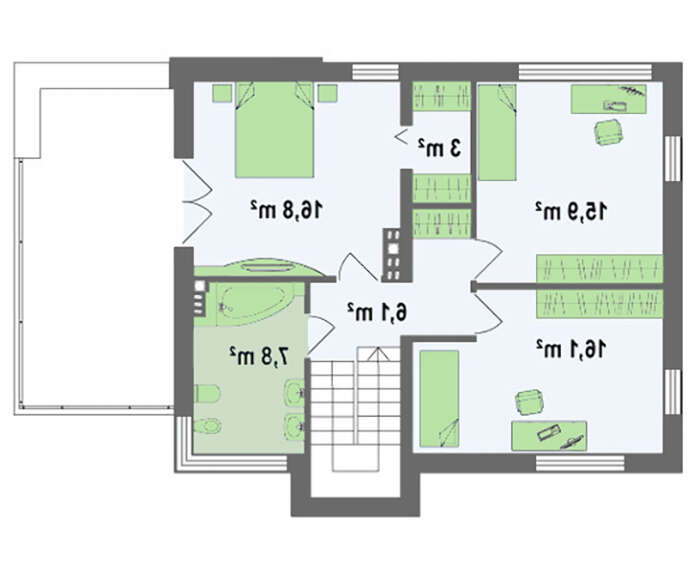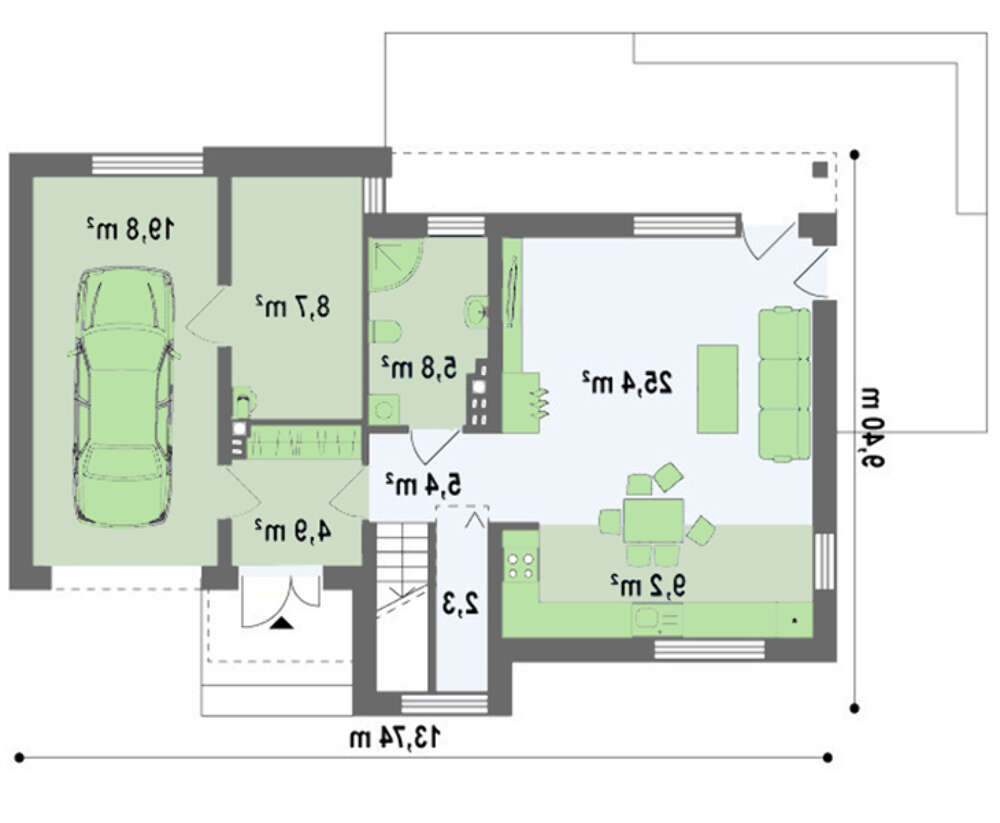 проект в зеркальном отображении позволит органично вписать дом в окружающий ландшафт.