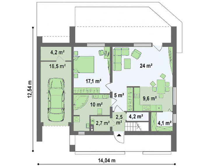 Проект содержит три раздела – АрхитектурныйКонструктивный и Инженерный: водоснабжение, отопление, вентиляция, канализация, электроснабжение (приобретается за дополнительную плату) + Пояснительная записка.