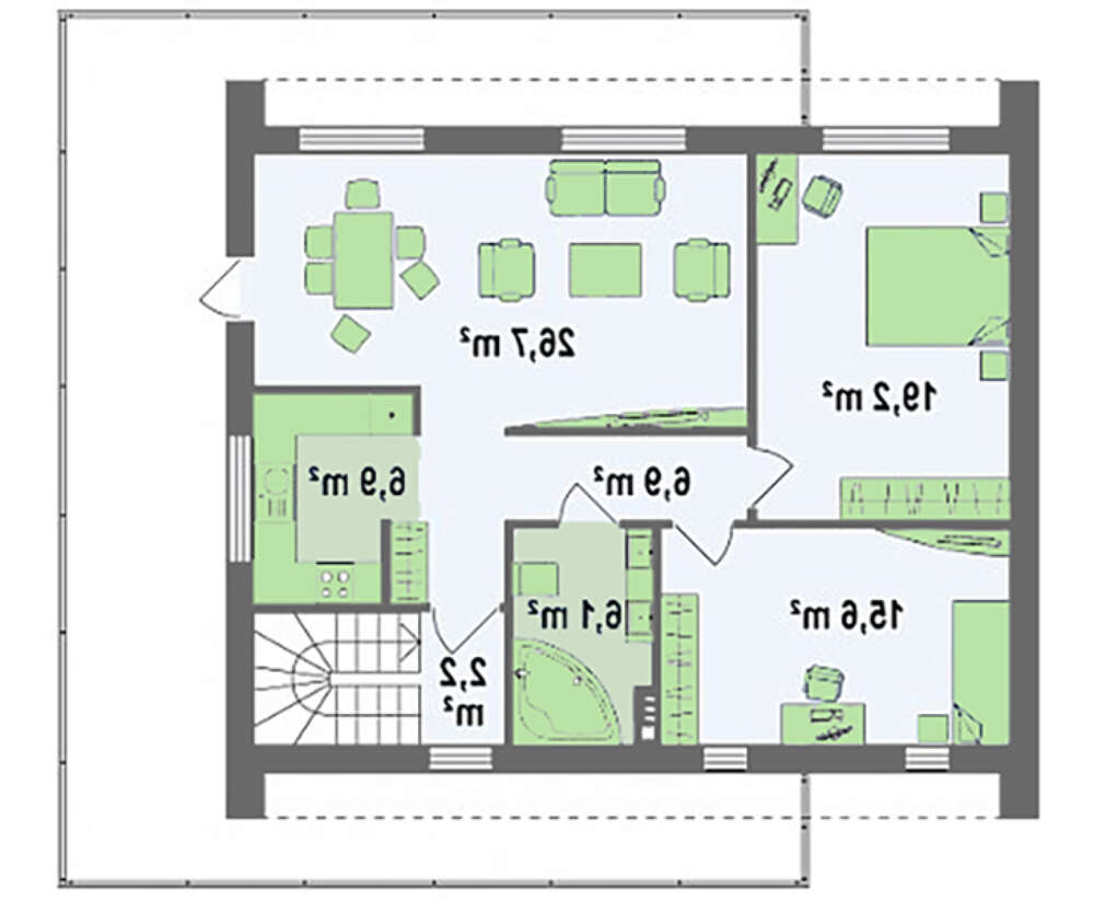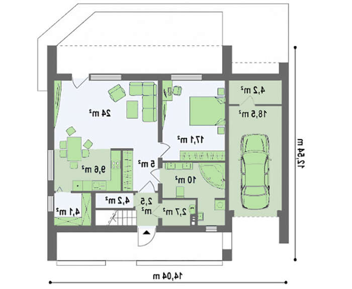 проект в зеркальном отображении позволит органично вписать дом в окружающий ландшафт.