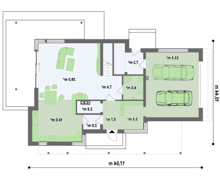 проект в зеркальном отображении позволит органично вписать дом в окружающий ландшафт.