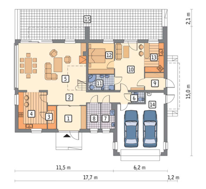 Проект содержит три раздела – АрхитектурныйКонструктивный и Инженерный: водоснабжение, отопление, вентиляция, канализация, электроснабжение (приобретается за дополнительную плату) + Пояснительная записка.