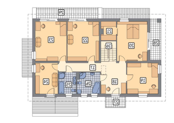 проект в зеркальном отображении позволит органично вписать дом в окружающий ландшафт.