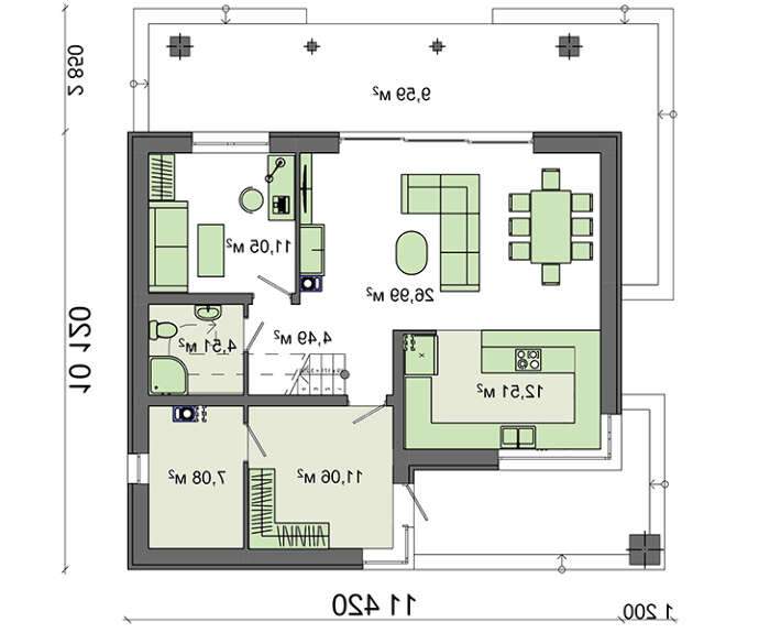 Проект двухэтажного дома площадью 174 кв. м с двумя террасами и балконом 4M1441