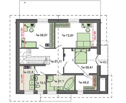 • 4M1441 Проект двухэтажного дома площадью 174 кв. м с двумя террасами и балконом