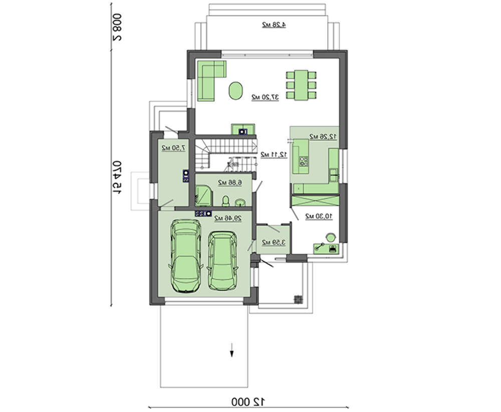 проект в зеркальном отображении позволит органично вписать дом в окружающий ландшафт.