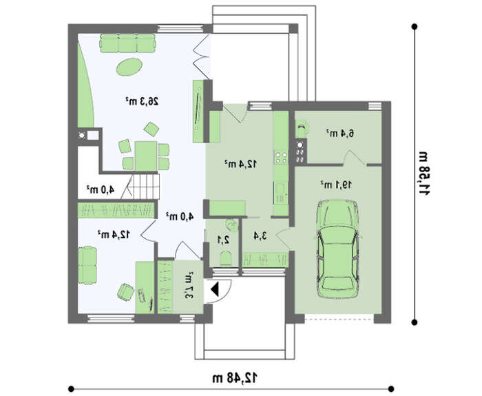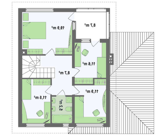 проект в зеркальном отображении позволит органично вписать дом в окружающий ландшафт.