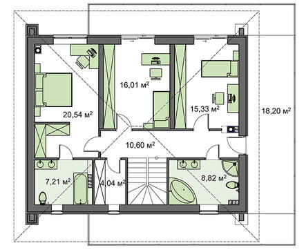 Проект содержит три раздела – Архитектурный, Конструктивный и Инженерный: водоснабжение, отопление, вентиляция, канализация, электроснабжение (приобретается за дополнительную плату) + Пояснительная записка.