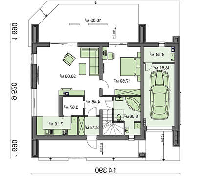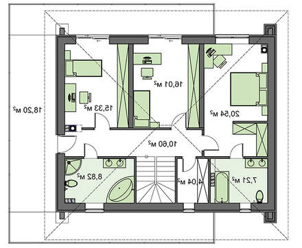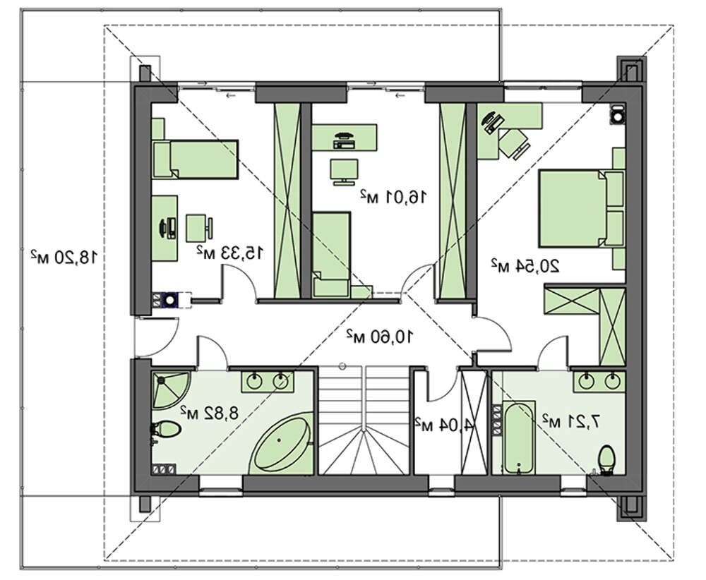 проект в зеркальном отображении позволит органично вписать дом в окружающий ландшафт.