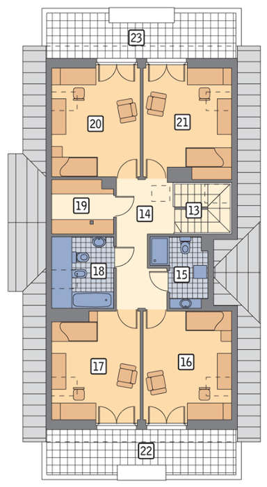 Проект содержит три раздела – Архитектурный, Конструктивный и Инженерный: водоснабжение, отопление, вентиляция, канализация, электроснабжение (приобретается за дополнительную плату) + Пояснительная записка.