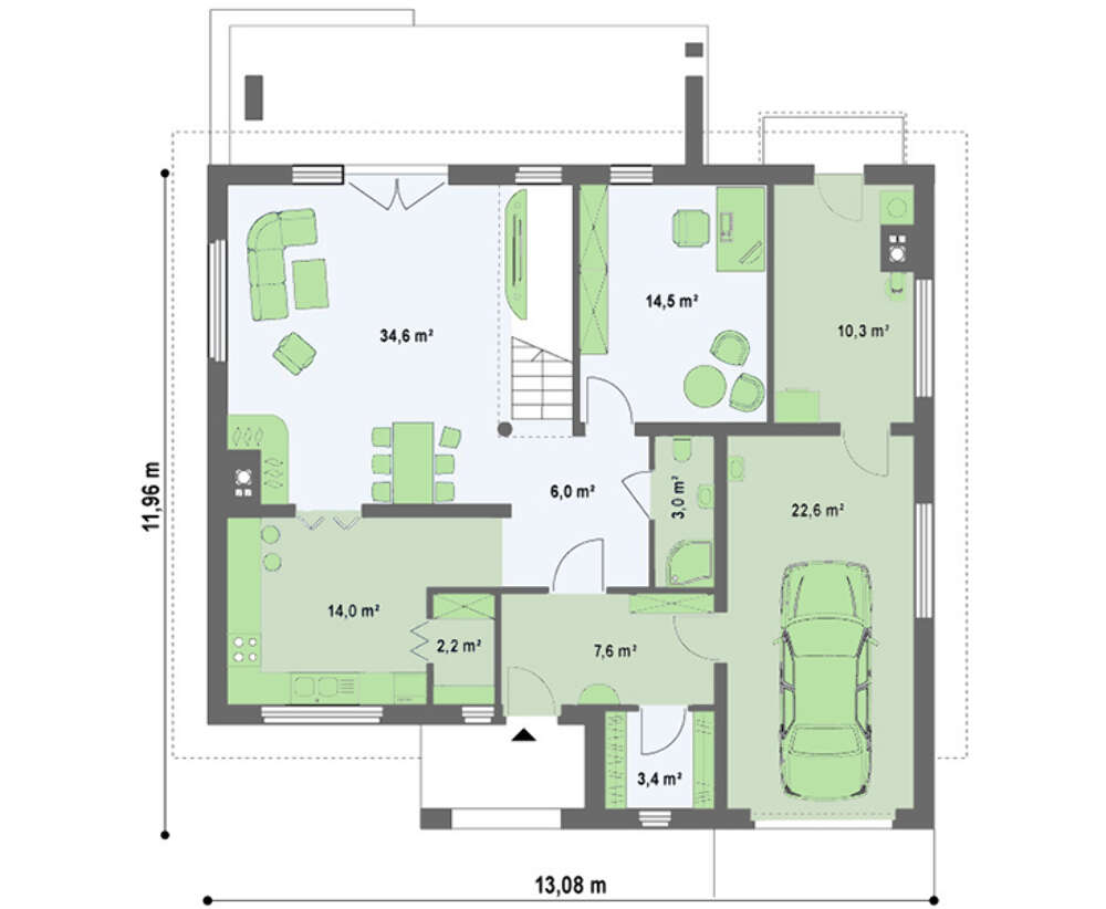 Проект двухэтажного дома с гаражом для одной машины 4M654
