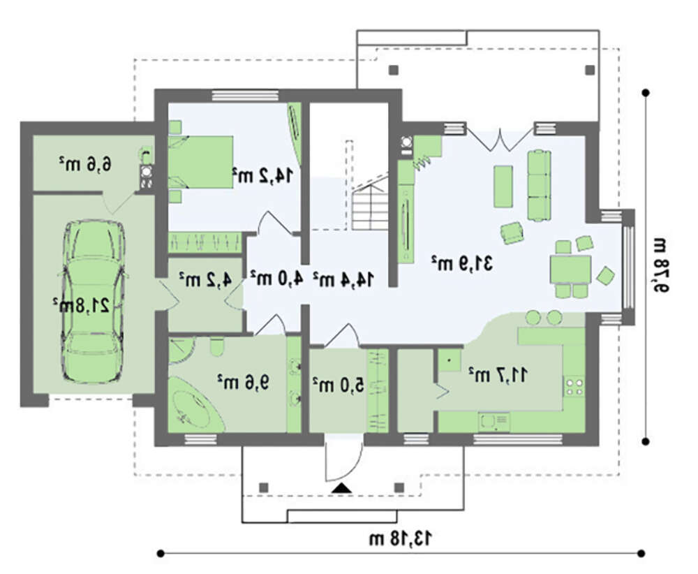 проект в зеркальном отображении позволит органично вписать дом в окружающий ландшафт.