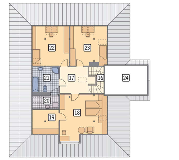 Проект содержит три раздела – Архитектурный, Конструктивный и Инженерный: водоснабжение, отопление, вентиляция, канализация, электроснабжение (приобретается за дополнительную плату) + Пояснительная записка.