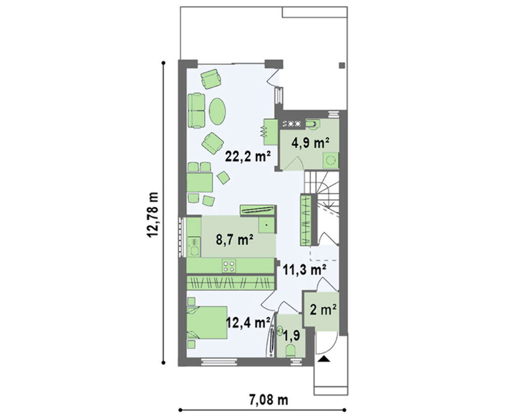 • 4M051 Проект двухэтажного энергосберегающего дома для узкого участка