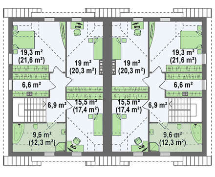 Проект двухэтажного коттеджа на две семьи с гаражом