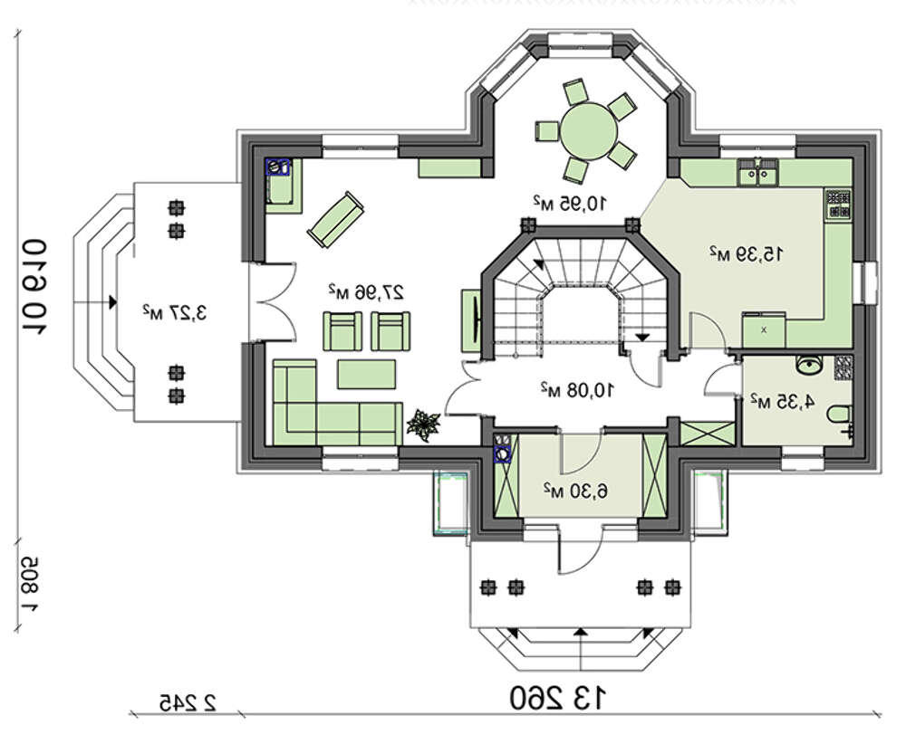 проект в зеркальном отображении позволит органично вписать дом в окружающий ландшафт.
