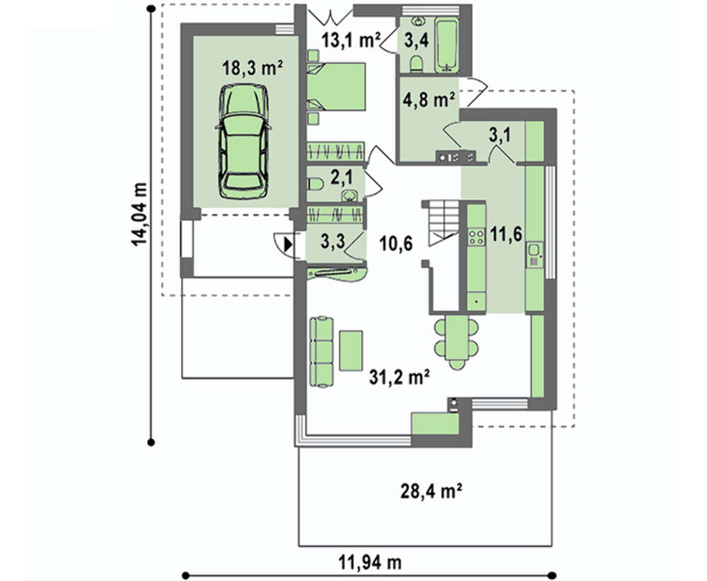 Проект двухэтажного дома с пристроенным гаражом