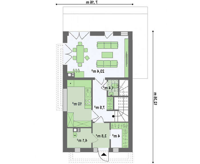 проект в зеркальном отображении позволит органично вписать дом в окружающий ландшафт.