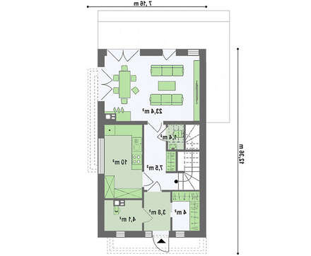 Яркий двухэтажный дом в стиле минимализма станет украшением как дачного надела, так и участка в коттеджном поселке за чертой мегаполиса, идеально впишется в живописный пейзаж. Компактные габариты здания обеспечат его размещение на территории различной формы и размеров. Дом гарантирует комфортное проживание для семьи из 3-4 человек.