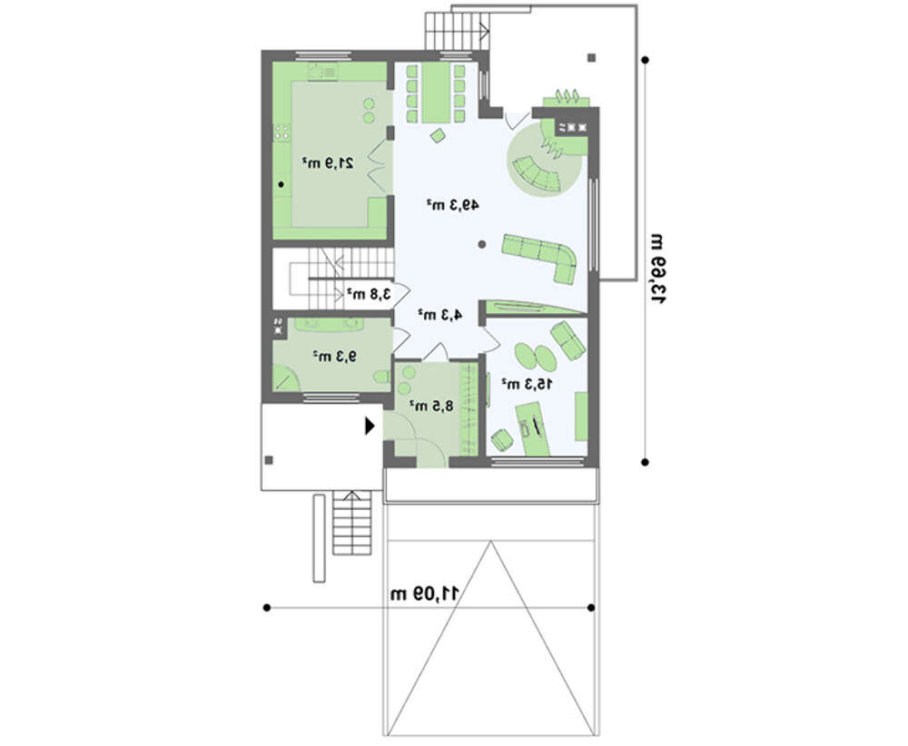 проект в зеркальном отображении позволит органично вписать дом в окружающий ландшафт.