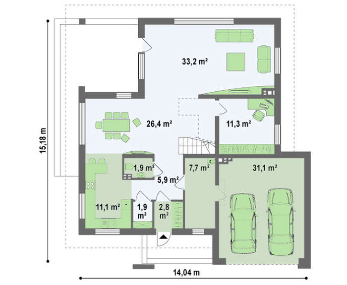 Проект двухэтажного коттеджа с современными элементами