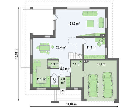 Проект содержит три раздела – АрхитектурныйКонструктивный и Инженерный: водоснабжение, отопление, вентиляция, канализация, электроснабжение (приобретается за дополнительную плату) + Пояснительная записка.