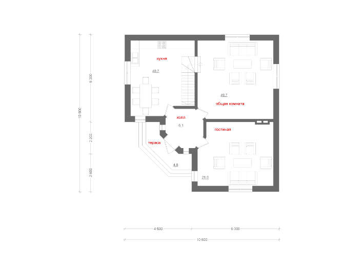 Проект содержит три раздела – Архитектурный, Конструктивный и Инженерный: водоснабжение, отопление, вентиляция, канализация, электроснабжение (приобретается за дополнительную плату) + Пояснительная записка.