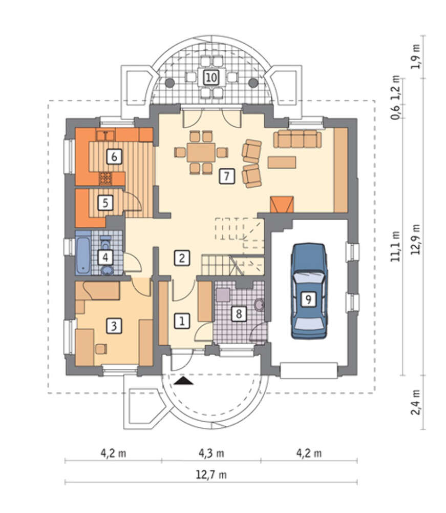 Проект двухэтажного особняка с полукруглыми балконами 4M6236a