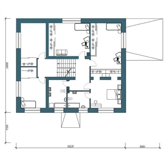 На втором этаже находятся личные комнаты членов семьи. Благодаря различной планировке можно подобрать помещение себе по вкусу. Хозяйские апартаменты выигрывают за счет собственного санузла.