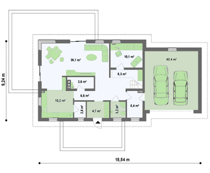 Проект содержит три раздела – АрхитектурныйКонструктивный и Инженерный: водоснабжение, отопление, вентиляция, канализация, электроснабжение (приобретается за дополнительную плату) + Пояснительная записка.