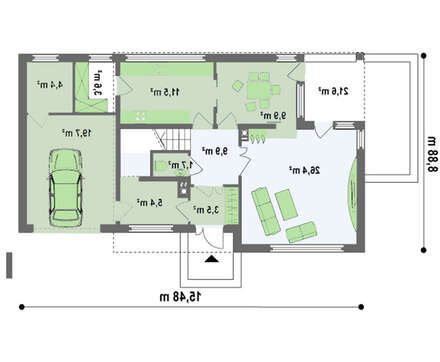 проект в зеркальном отображении позволит органично вписать дом в окружающий ландшафт.