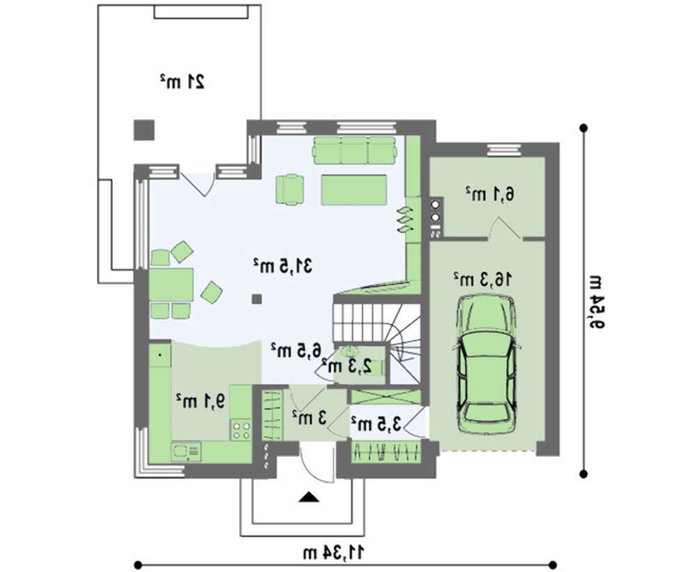 проект в зеркальном отображении позволит органично вписать дом в окружающий ландшафт.