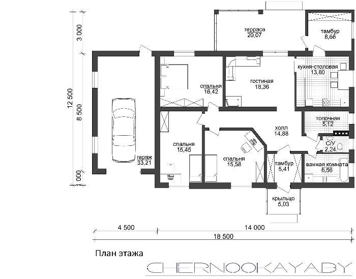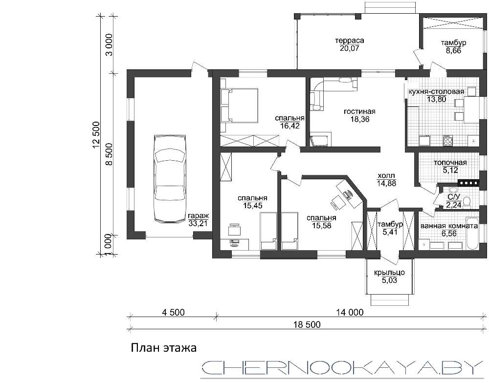Красивый одноэтажный особняк под двухскатною крышею 4M050