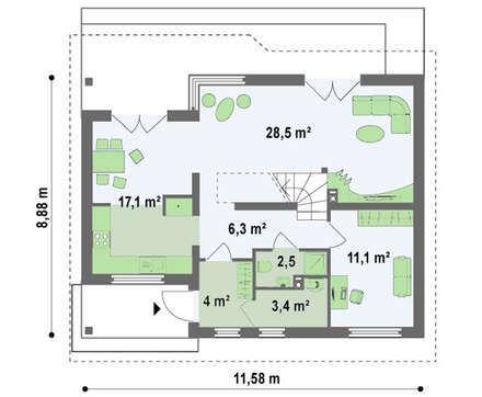 изменить высоту потолков. Хотя все наши дома спроектированы с оптимальной высотой помещений 2,8 м, некоторые заказчики считают, что высокие потолки – это дополнительный уют и комфорт