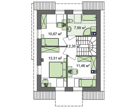 Проект содержит три раздела – АрхитектурныйКонструктивный и Инженерный: водоснабжение, отопление, вентиляция, канализация, электроснабжение (приобретается за дополнительную плату) + Пояснительная записка.