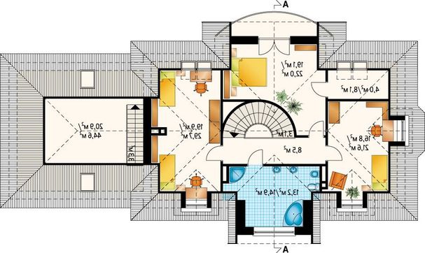 проект в зеркальном отображении позволит органично вписать дом в окружающий ландшафт.