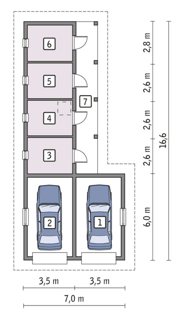 Проект гаража на 2 авто с дополнительными помещениями 4M6087