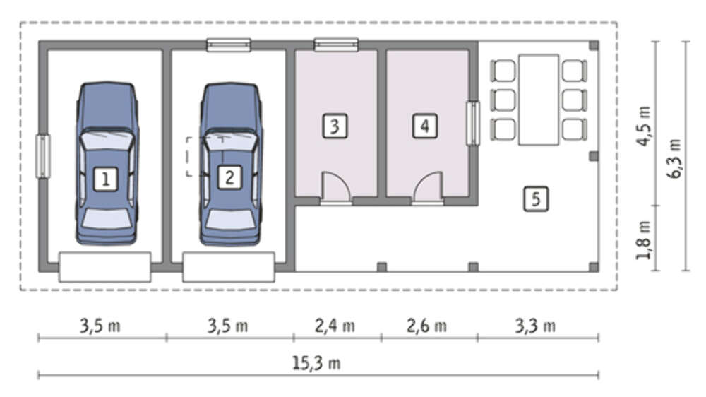 Проект гаража на 2 авто с навесом и дополнительными помещениями | Компания DOM4M