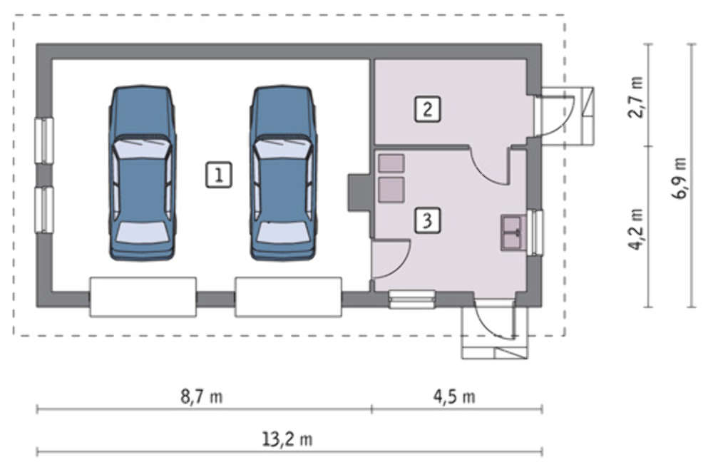 Проект содержит три раздела – АрхитектурныйКонструктивный и Инженерный: водоснабжение, отопление, вентиляция, канализация, электроснабжение (приобретается за дополнительную плату) + Пояснительная записка.