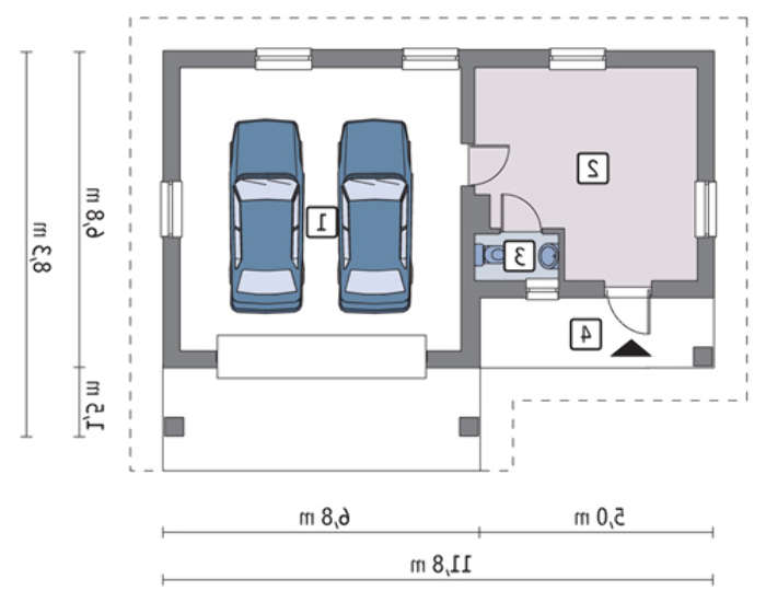 проект в зеркальном отображении позволит органично вписать дом в окружающий ландшафт.