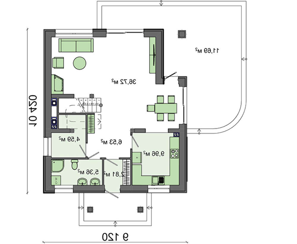 проект в зеркальном отображении позволит органично вписать дом в окружающий ландшафт.