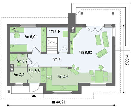 • 4M496 Проект классического дома с большой комнатой на первом этаже