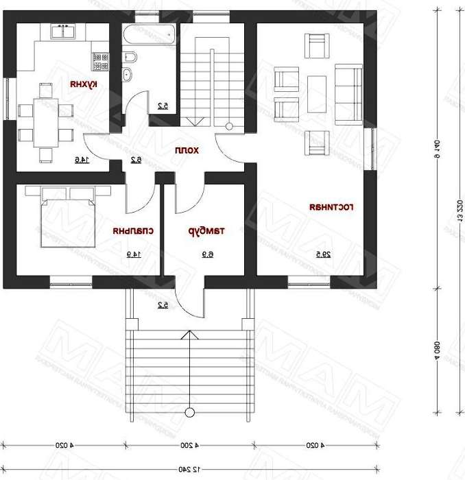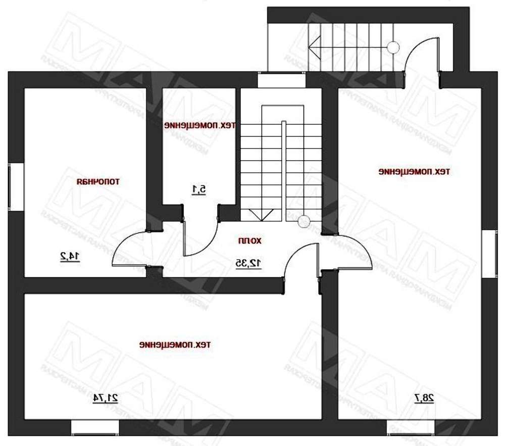 проект в зеркальном отображении позволит органично вписать дом в окружающий ландшафт.