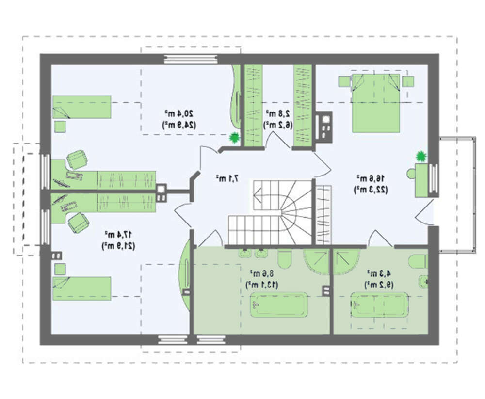 Домик 4М242 на внешний вид очень прост, и имеет небольшой размер. Но в простоте кроется шарм и вкус, а в небольшом пространстве - целая вселенная. Второй этаж, выполнен в виде мансарды, существенно экономит пространство, но вмещает в себе целые 3 спальни и 2 просторные ванные комнаты. Светлые, неагрессивные цвета располагают к спокойному и крепкому сну. Окна с четырех сторон делают пространство достаточно осветленным и наполненным свежим воздухом. На первом этаже гостей встречает дружелюбная и просторная гостиная, которая плавно переходит в столовую, а затем в уютную кухню. В такой гостиной хочется задержаться. Изюминкой этого дома является кабинет. Именно в таких кабинетах великие люди придумывают свои самые непостижимые проекты. В этом доме и для семейной машины найдется уютное местечко. Гараж пристроен прямо к дому и имеет вход, как с улицы, так и с дома.