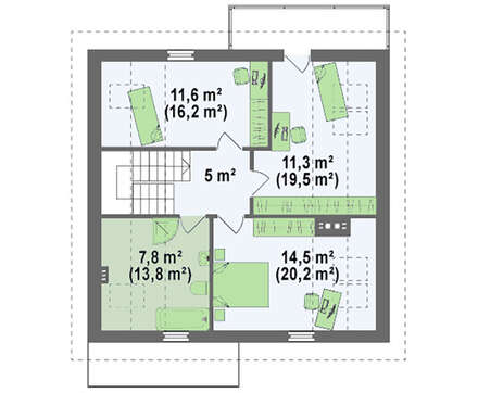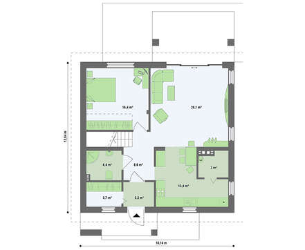 Проект классического дома средних размеров с двухскатной крышей 4M216