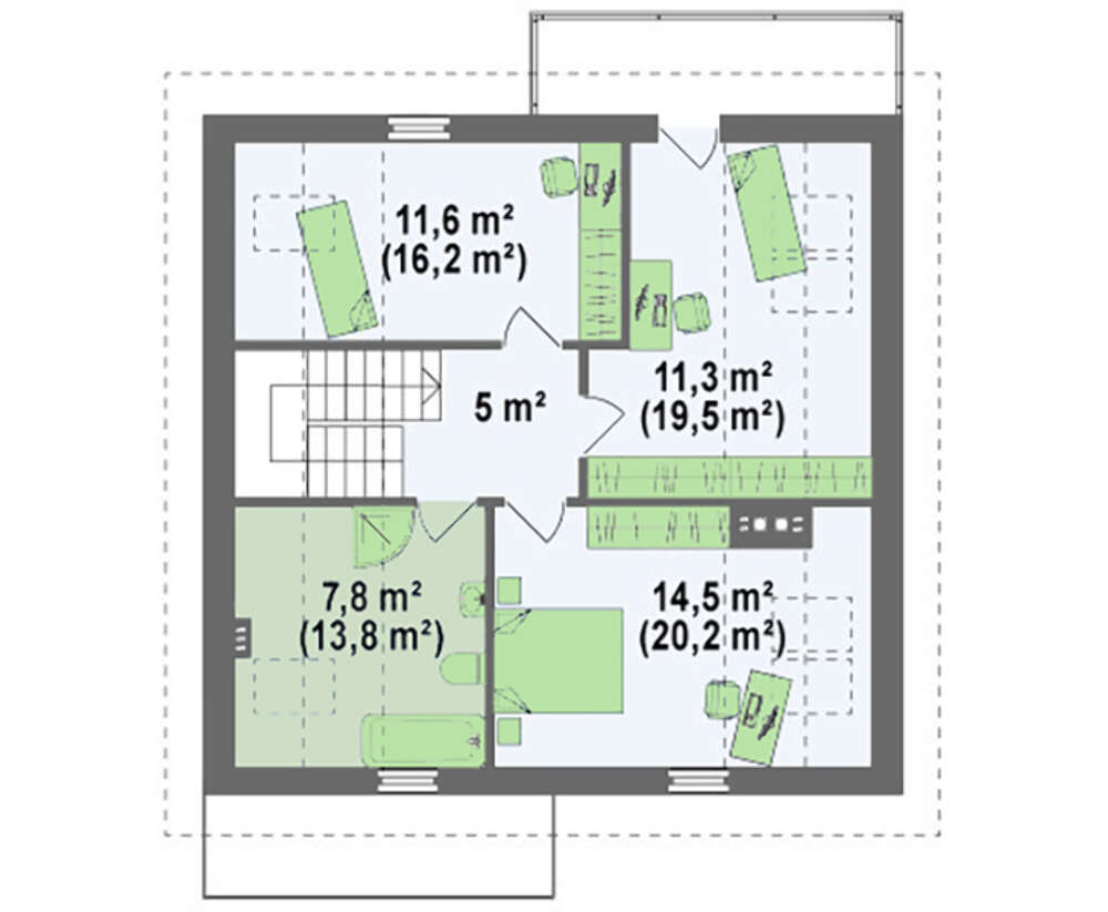 Проект классического дома средних размеров с двухскатной крышей 4M216