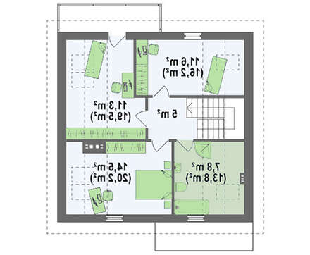 проект в зеркальном отображении позволит органично вписать дом в окружающий ландшафт.