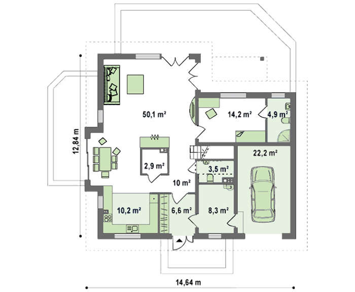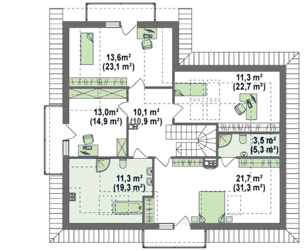Проект содержит три раздела – АрхитектурныйКонструктивный и Инженерный: водоснабжение, отопление, вентиляция, канализация, электроснабжение (приобретается за дополнительную плату) + Пояснительная записка.