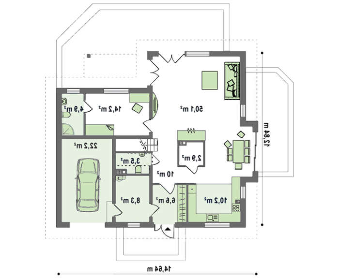 проект в зеркальном отображении позволит органично вписать дом в окружающий ландшафт.